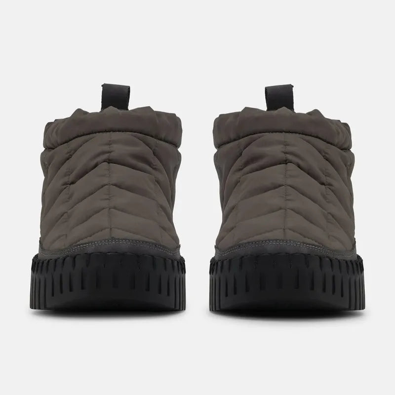 Tulip low winter boot with a quilted pattern and a water-repellent surface. Drawstring on the back for adjustments. Warm artificial down padding and microfiber lining for colder days. Resting on a waterproof outsole with match color recycled thread. The insole has padding and support to ensure great comfort.