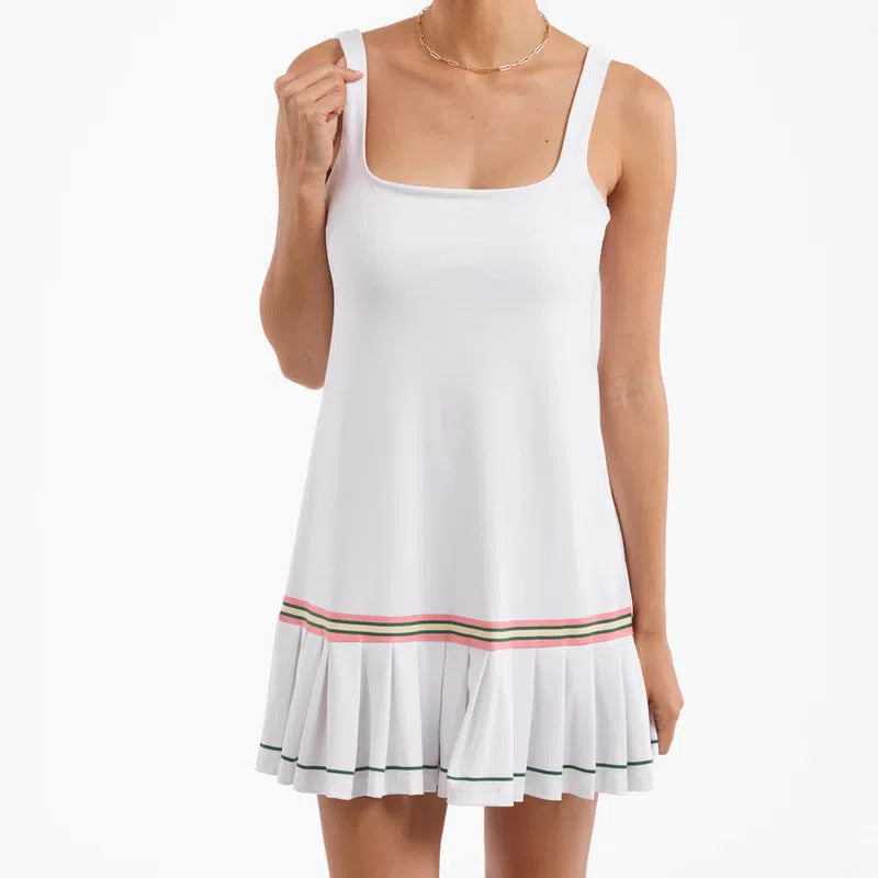 Game, set, match. We love this drop waist, pleated tennis dress so much we might wear it for our next GNO.
