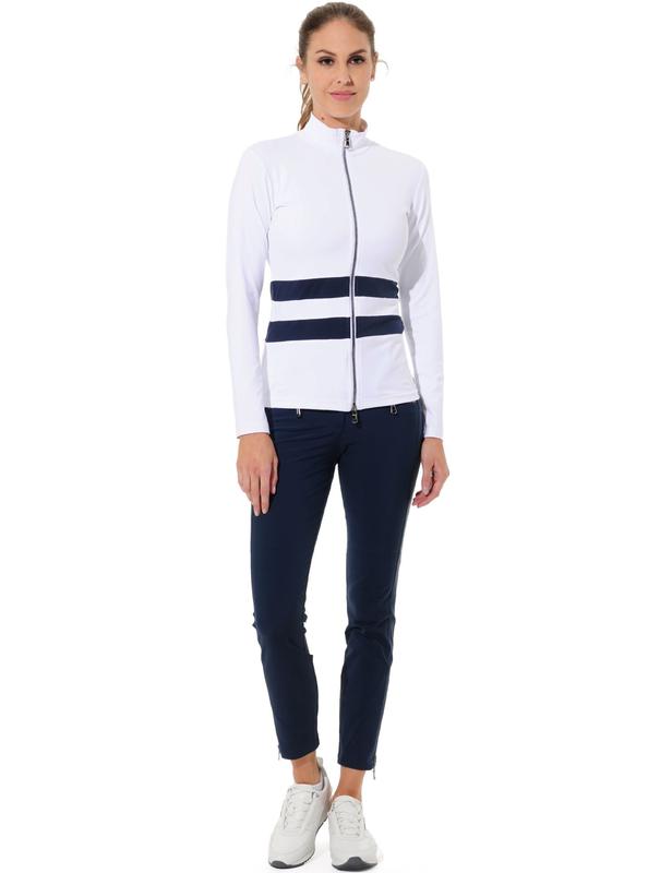 The MDC Full Zip Jacket in white is a must-have for any active wardrobe. Featuring a breathable knitted Meryl fabric and zip pockets, this jacket offers comfort and convenience. And with Swarovski® elements adding a touch of elegance, it's both functional and stylish. Made from 90% polyamide and 10% elastane, it's also lightweight and stretchy for maximum flexibility.
