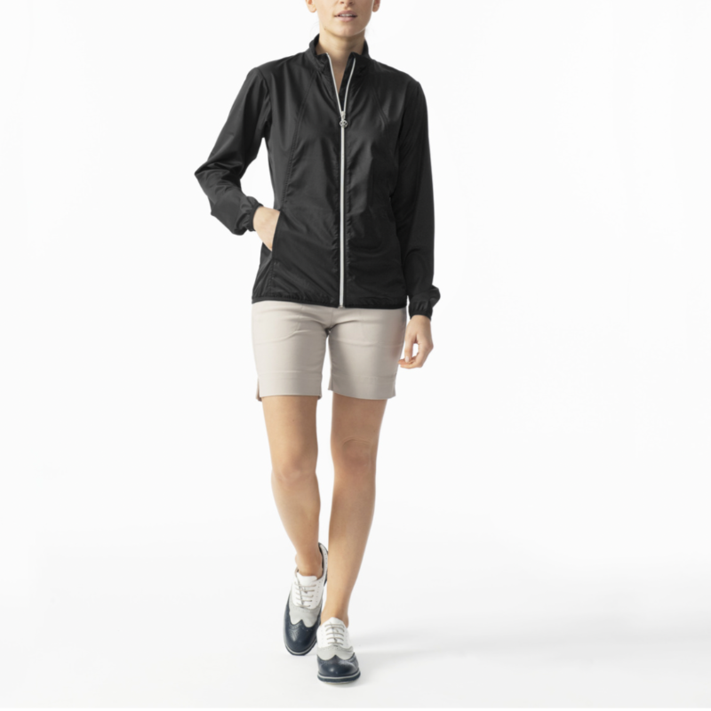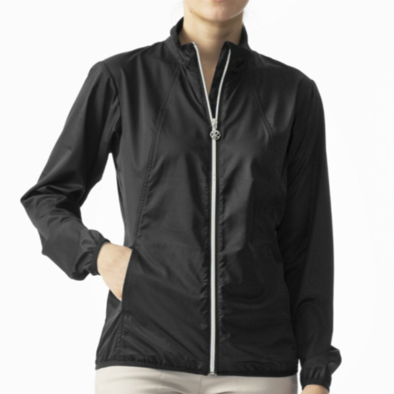 The Mia black jacket is a great item to have on those windy days. Classic wind jacket with full zip closure and side pockets.