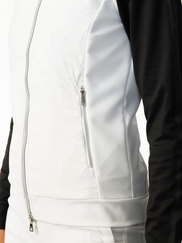 The Peg vest delivers both a classic design and sporty details. This golf vest is made from an ultra-light stretch fabric that moves with you as you take your swing. The front is made from windproof fabric that provides cosy protection and it also has two practical zipped pockets. Not forgetting a stand-up collar adorned with two eye-catching press-stud fasteners.