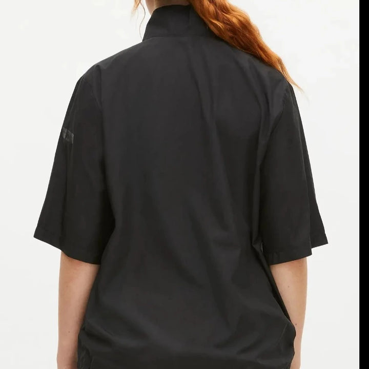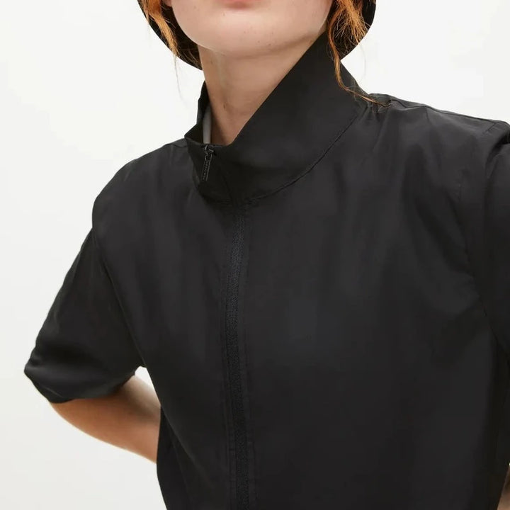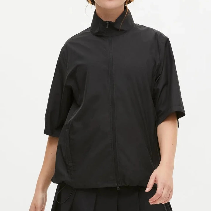 Made in a light, wind resistant and 100% recycled polyester. Designed with the ability to pack the top down in one of the pockets, and with details such as zip pockets in the front as well as an adjustable drawstring at the bottom hem. Regular fit.